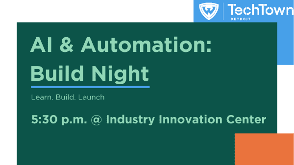 Join us with Detroit's builders for an intensive hands-on session where you'll learn practical AI and automation, build working prototypes with expert mentors, and demo what you shipped by the end of the night. What is Build Night? TechTown's AI and Automation Build Nights are a monthly series designed for beginners, founders, and builders who […]